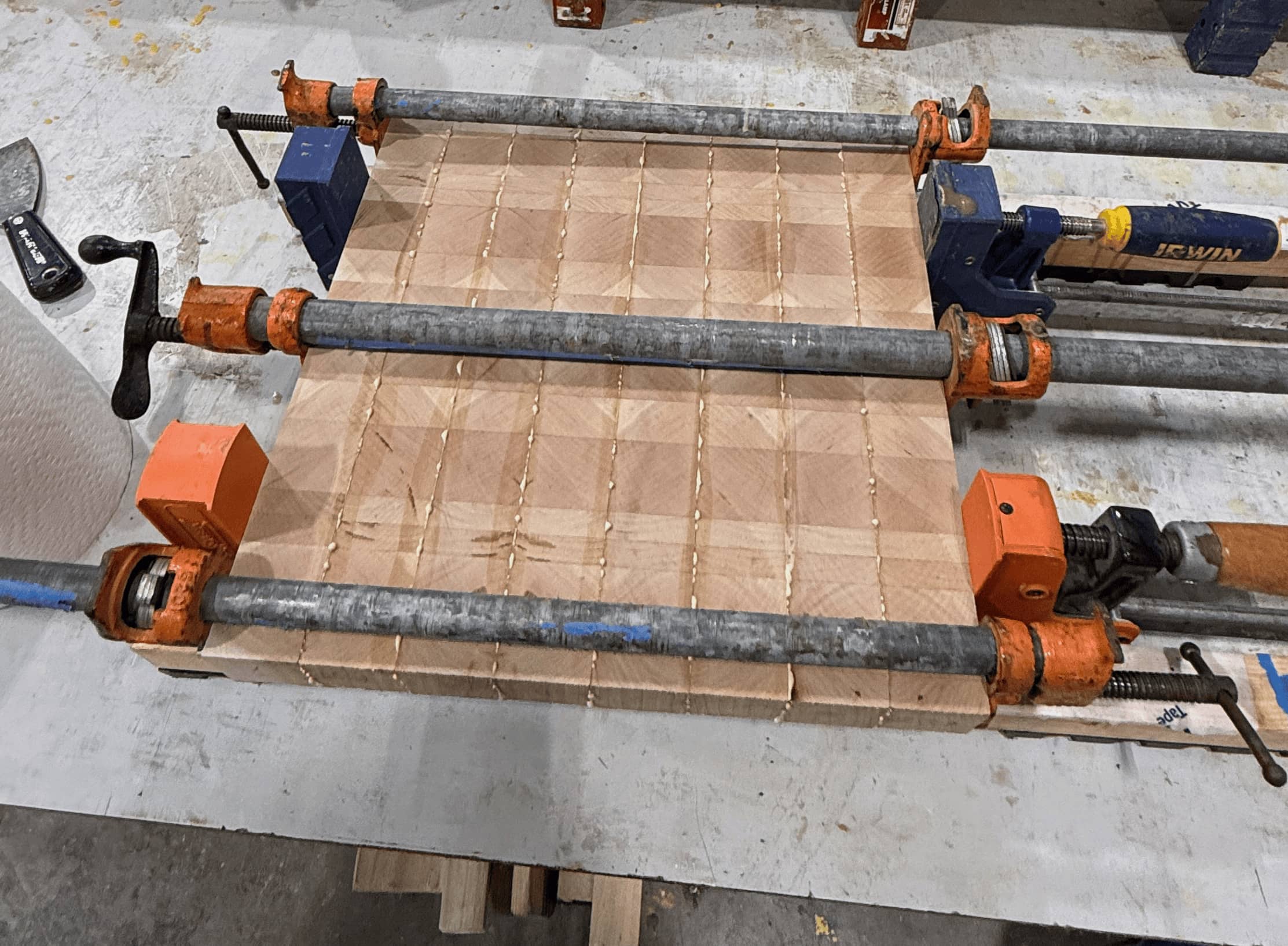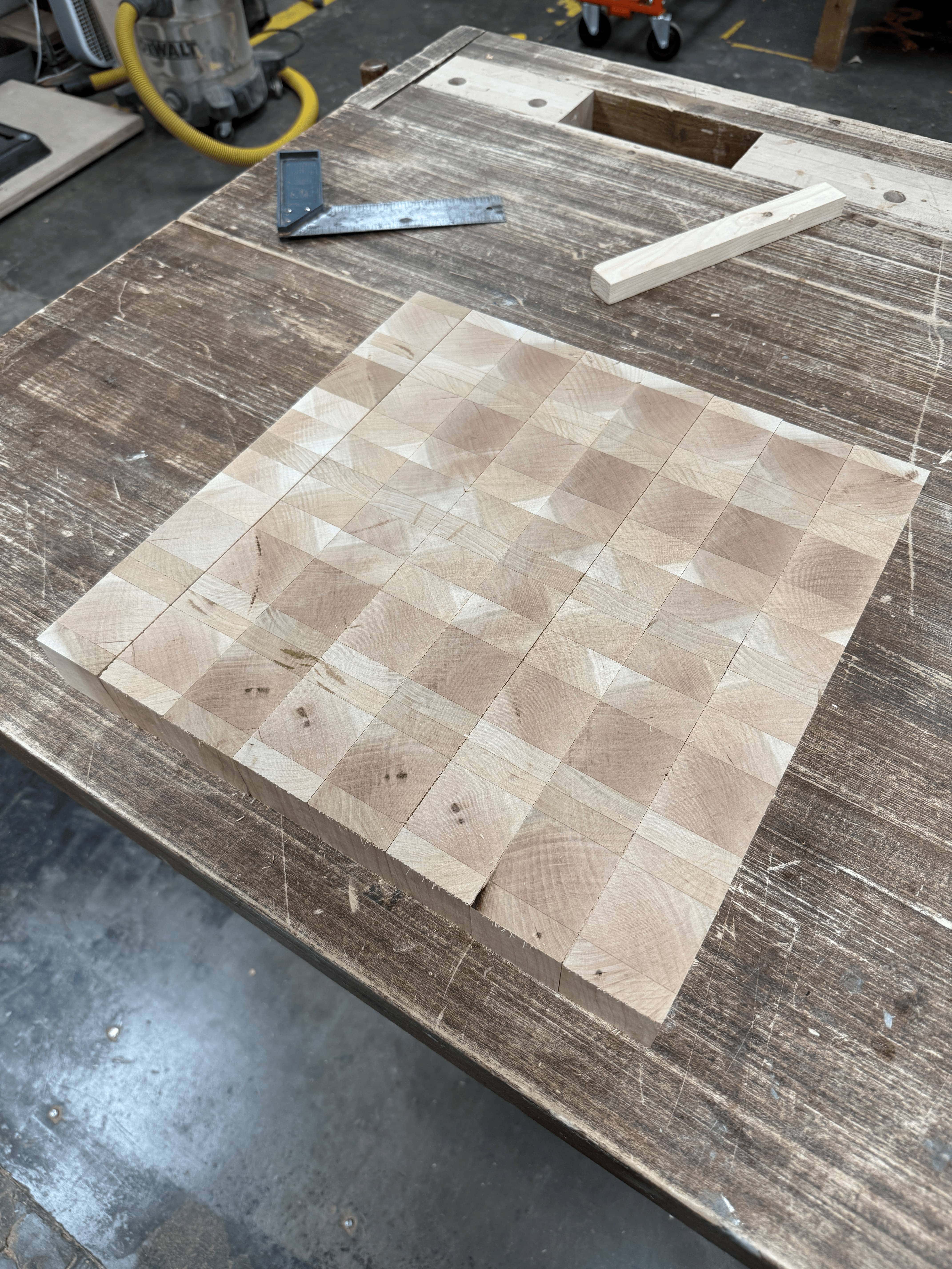 There are hundreds, if not thousands, of tutorials online about making end grain cutting boards. So I won’t detail the process, but I’ll include some pictures I took during the build.