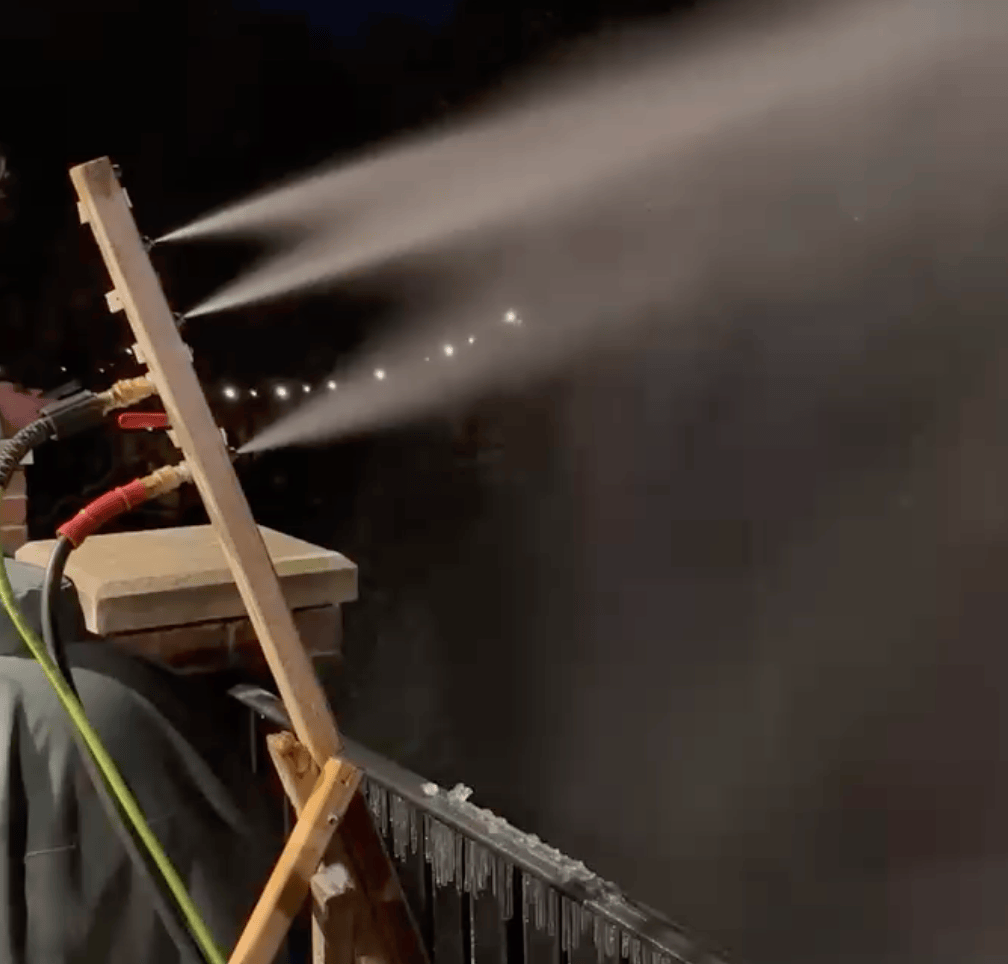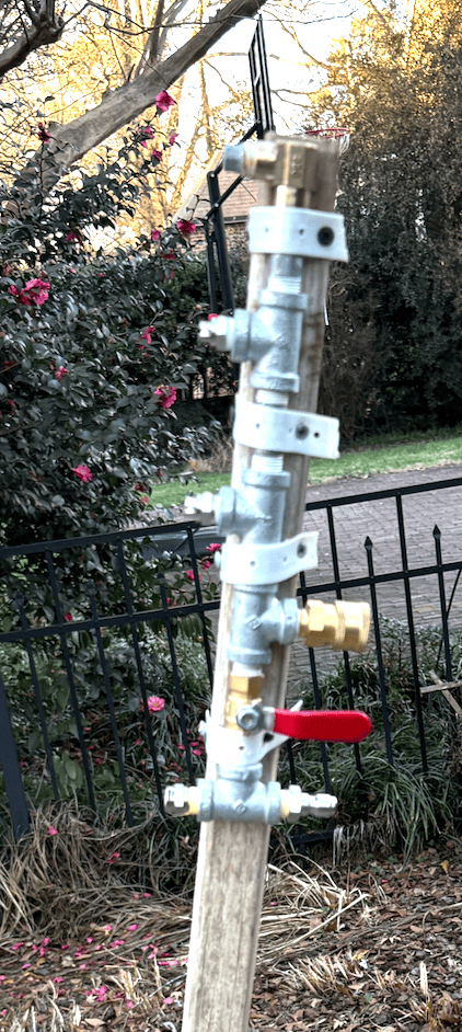 There are several websites explaining how to build a basic snow gun online, so I won’t explain here. The site that I used was snsnowmaking.com. I got the pressure washer nozzles and odd bits from Amazon and Northern Tool. I got the piping at Home Depot.